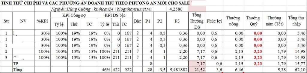 - Nếu vị trí sale thì sẽ có 4 bao gồm: P1 + P2 + P3 + %hoa hồng